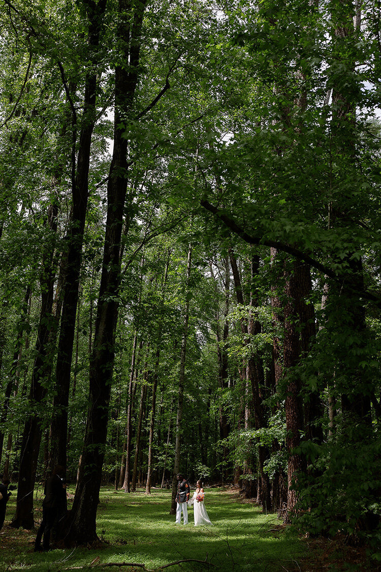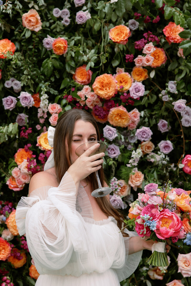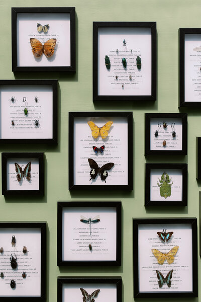Daryel and Buggy chose an at-home wedding to feel close to the bride's late father and to fulfill her dream of a home ceremony. The bride has always gone by her nickname "Buggy," and her name matches her fun & free personality. Insect motifs, vintage furniture, and bright florals fit their eclectic taste and made every guest feel at home.