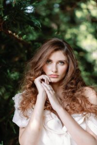 Redhead bride with green eyes by Sarah Bradshaw at Biltmore Estate